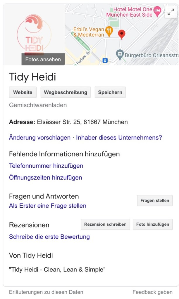 And as I was in the flow, I also registered Tidy Heidi as a trade in Munich, the city where I live in with my family.